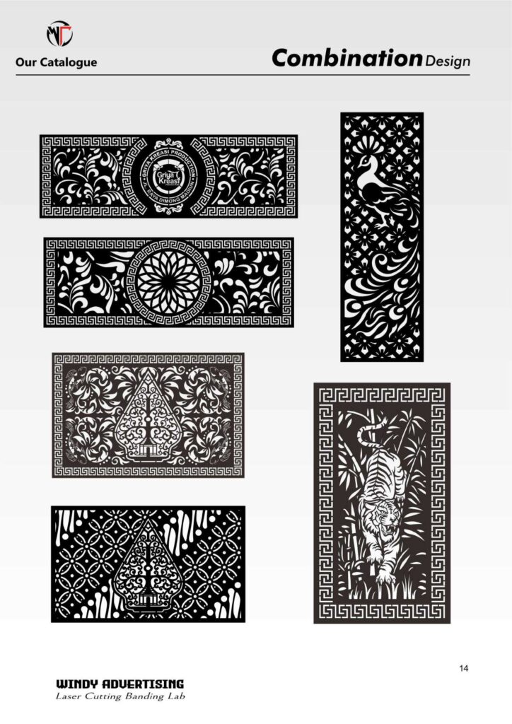 Kami melayani pengerjaan dari awal hingga akhir: mulai dari konsultasi kebutuhan, penyesuaian desain, proses laser cutting, bending, hingga tahap fabrikasi sesuai kebutuhan proyek. Untuk mendukung variasi pekerjaan, kami juga menyiapkan koleksi referensi desain/motif (seamless, floral, landscape, javanese, animal, dan lainnya) yang bisa dipilih atau dikembangkan menjadi desain custom sesuai konsep brand maupun ruang.